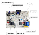 این برد مربوط به برد خارجی که در قسمت پنل بیرونی نصب شده میباشد و مربوط به اکثر مدل های کولر اسپلیت خانواده مدیا میباشد ، مثل کولرهای ۲۴ و ۳۰ و ۳۲ و ۳۶ هزار مدیا ، تراست ، سوپر جنرال ، زانتی ، جنرال گلد ، تک الکتریک ، ایوولی