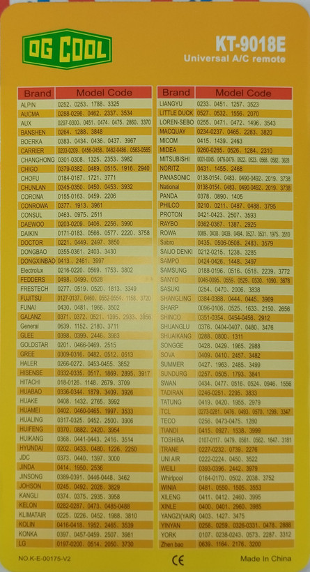 برای ست کردن فقط کافیست کد یا کدهای مارک دستگاه خود را از دفترچه داخل بسته پیدا کنید و در حافظه کنترل وارد کنید تا به راحتی کنترل با کولر ست و جفت شود.